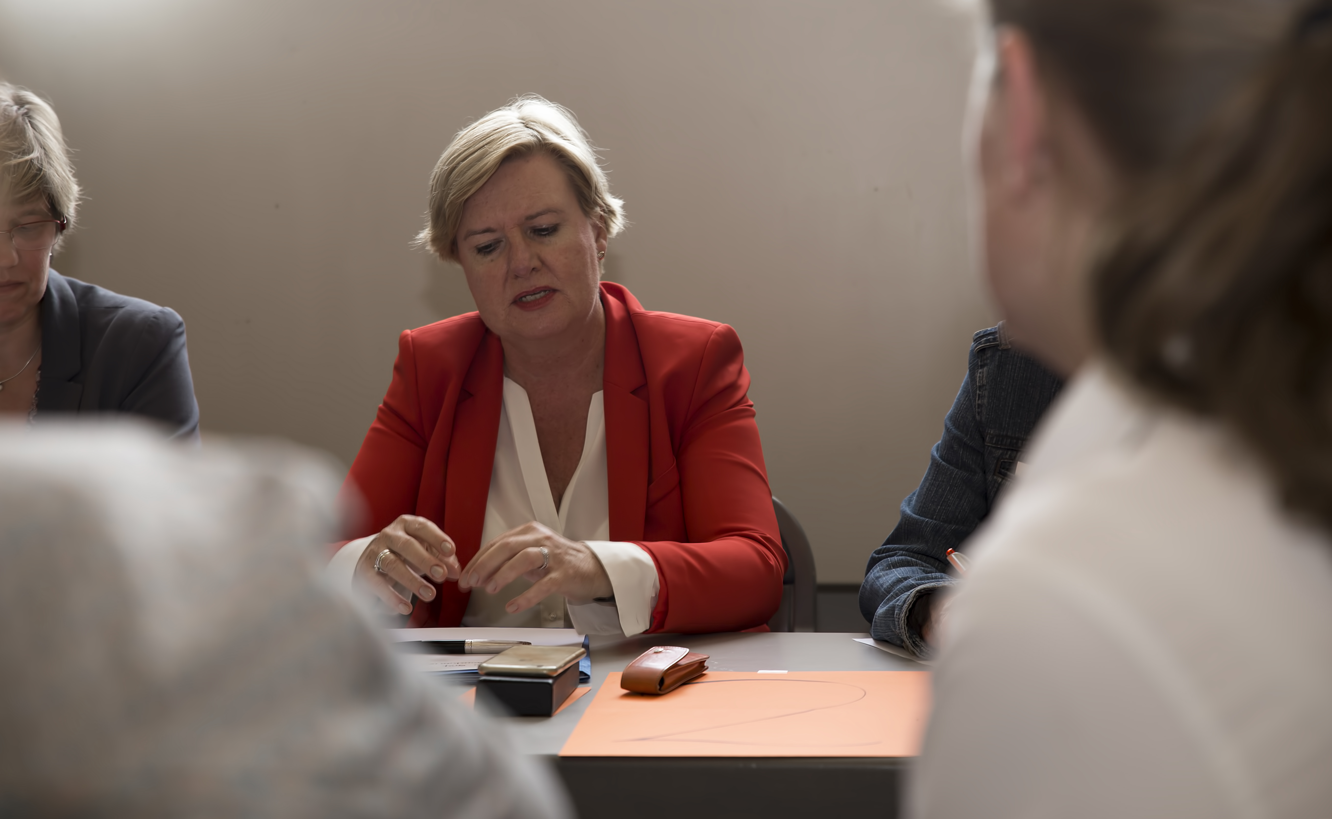 Nach der offiziellen Begrüßung durch die Vorsitzende des LFR wurden die Kandidat*innen nacheinander durch die Moderatorin Sharon Adler vorgestellt. Bei der Einführung von Beatrix von Storch wurde dies durch den lautstarken Protest einer Teilnehmerin gegen die antifeministischen Positionen der AfD-Politikerin unterbrochen. Danach begaben sich die Spitzenkandidat*innen an die sechs Tische und die Fragerunden begannen. Während der Veranstaltung herrschte eine sehr konzentrierte Stimmung im Saal, die Teilnehmenden und die Politiker*innen vertieften sich in die Gespräche (Eindrücke von einer Tischgruppe hier).